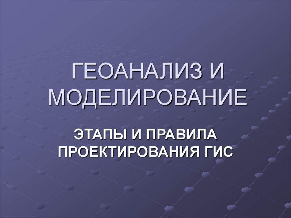 Геоанализ и моделирование. Этапы и правила проектирования ГИС
