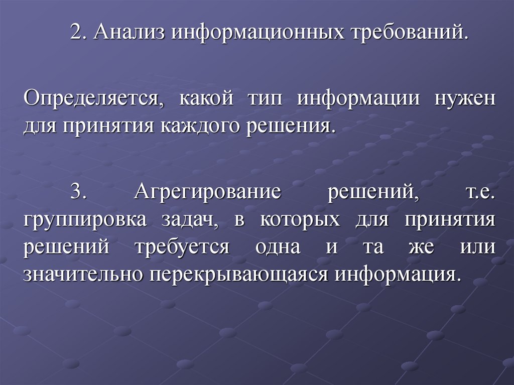 2. Анализ информационных требований.Определяется, какой тип информации нужен