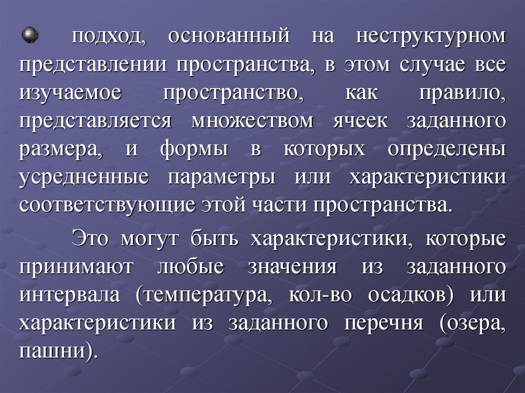 подход, основанный на неструктурномпредставлении пространства, в этом случае все