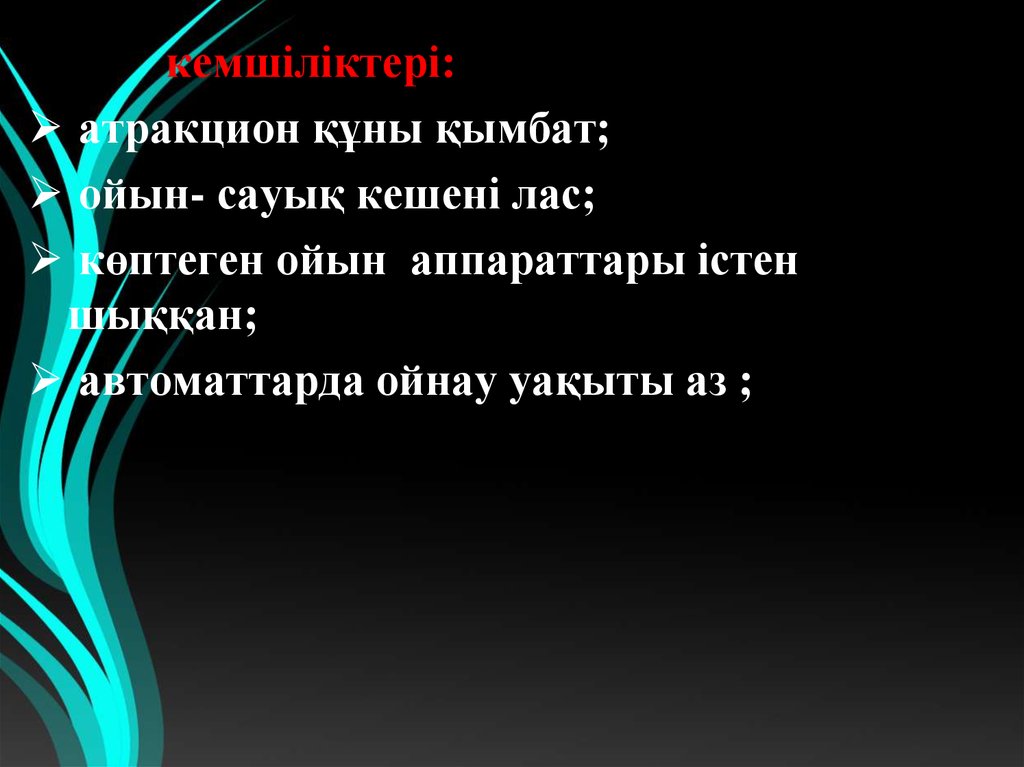 Спорттық атракциондар: футбол,баскетбол,аэро-хоккей, мини-боулинг, спорттық