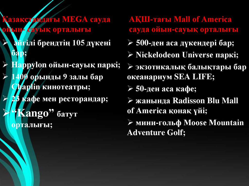 MEGA – Казақстандағы әлем деңгейіндегі ең ірісауда-ойын-сауық орталықтарының желісі.