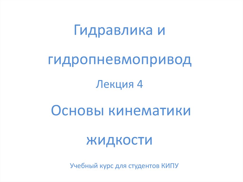 Гидравлика и гидропневмопривод. Лекция 4. Основы кинематики жидкости