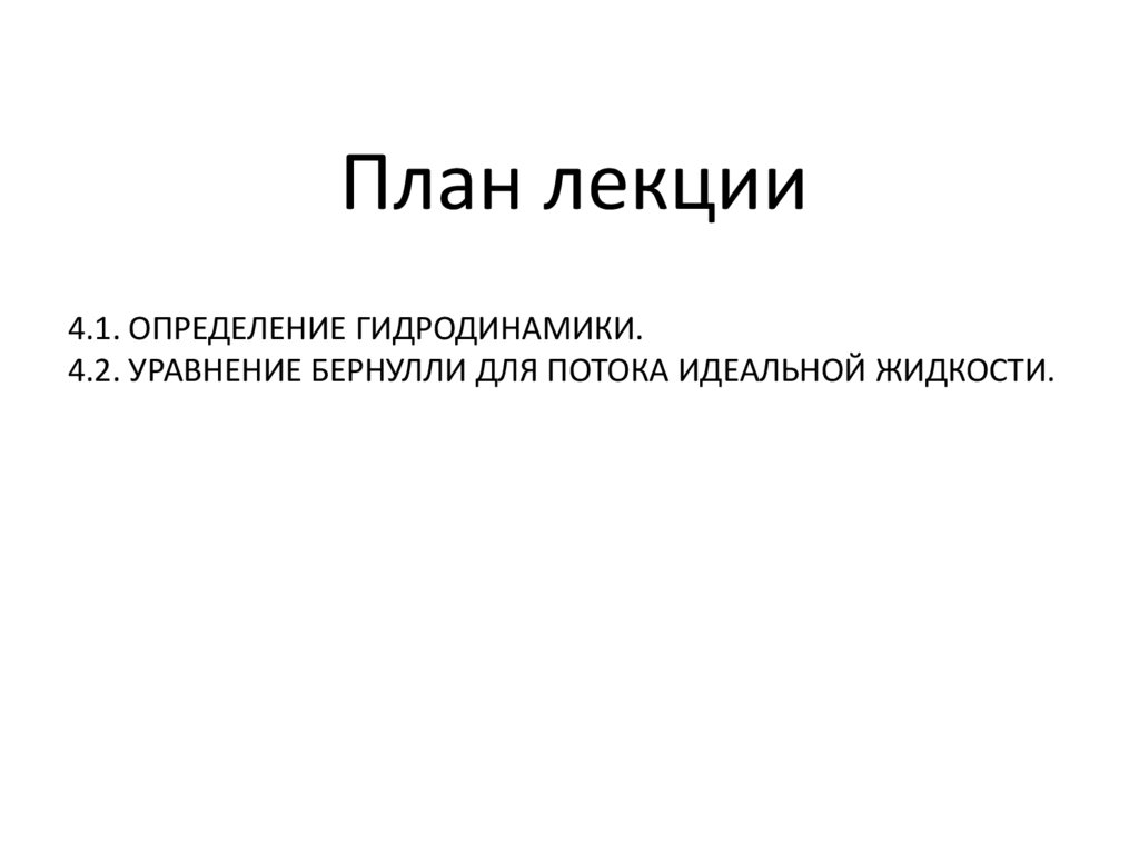 План лекции4.1. ОПРЕДЕЛЕНИЕ ГИДРОДИНАМИКИ.