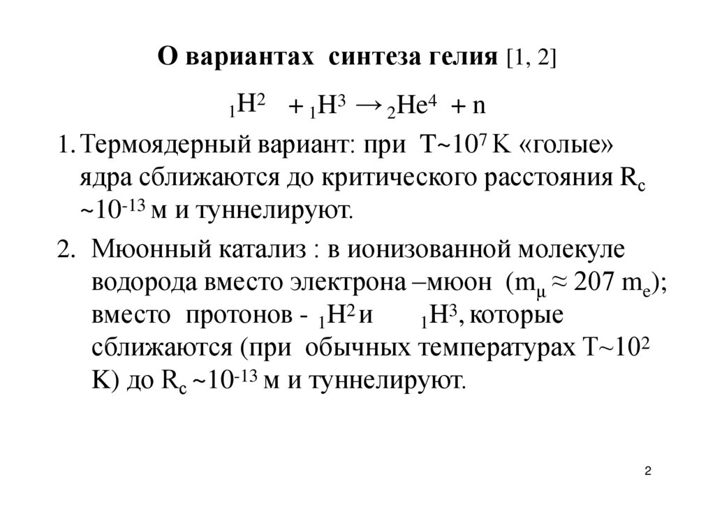 2. Роль катализатора в реакциях низкотемпературного синтеза химических элементов