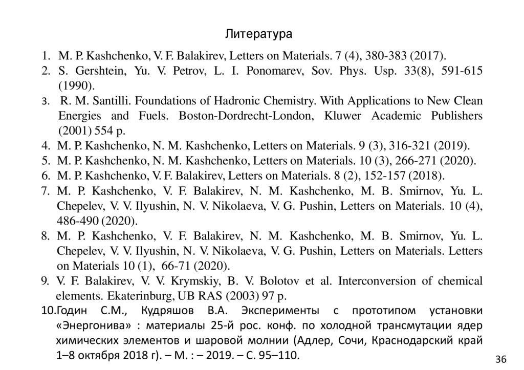 Литература1. M. P. Kashchenko, V. F. Balakirev, Letters on Materials. 7 (4), 380-383 (2017).