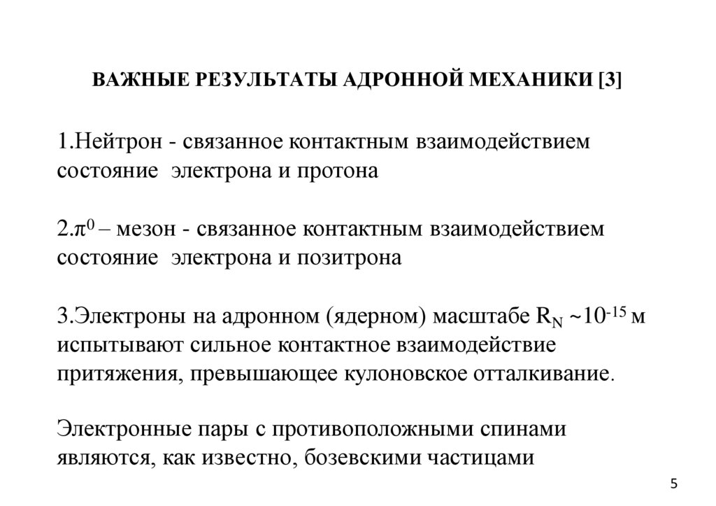 ВАЖНЫЕ РЕЗУЛЬТАТЫ АДРОННОЙ МЕХАНИКИ [3]1.Нейтрон - связанное контактным взаимодействием