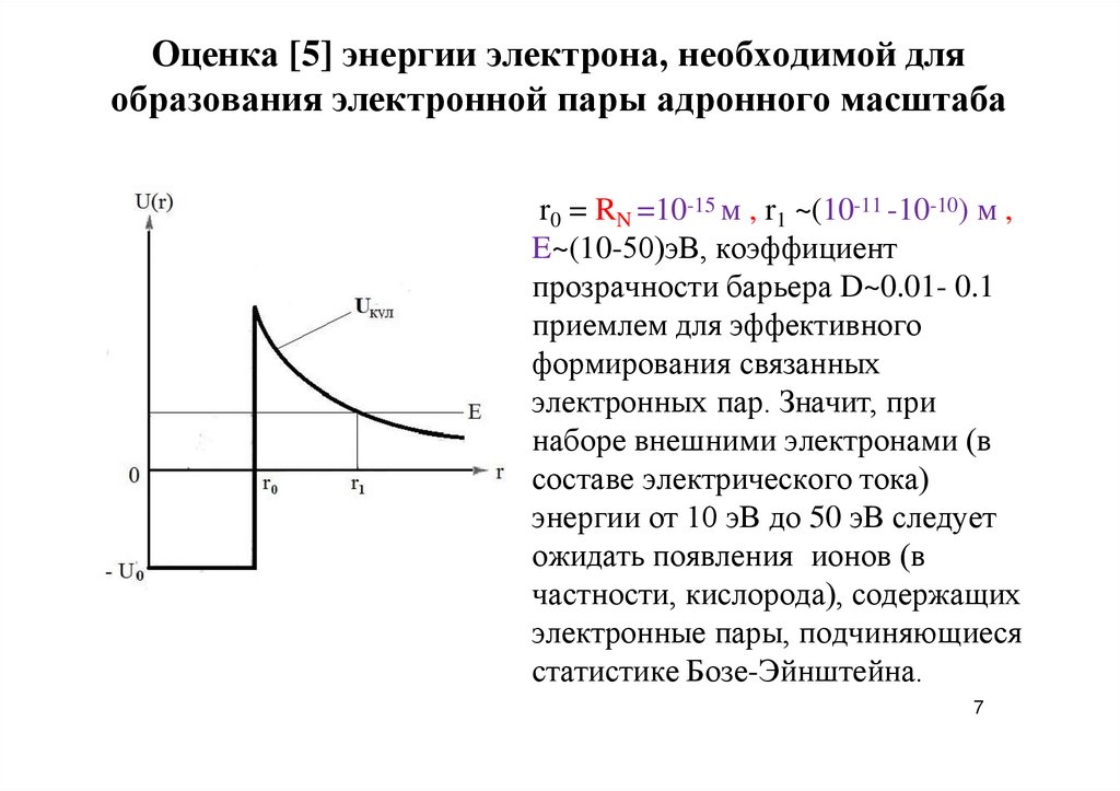 Оценка [5] энергии электрона, необходимой дляобразования электронной пары адронного масштаба