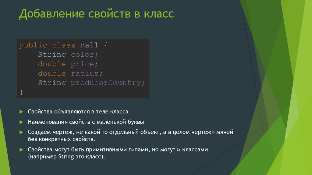 Чтобы обратиться к определенному свойству мяча, нужно название объекта