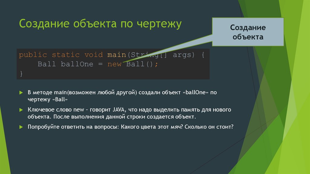В методе main(возможен любой другой) создали объект «ballOne» по
