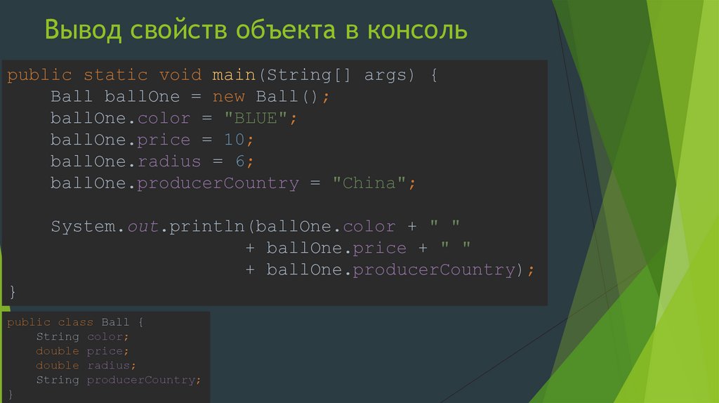Вывод свойств объекта в консольpublic static void main(String[] args) {
