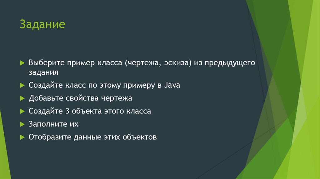 ЗаданиеВыберите пример класса (чертежа, эскиза) из предыдущего