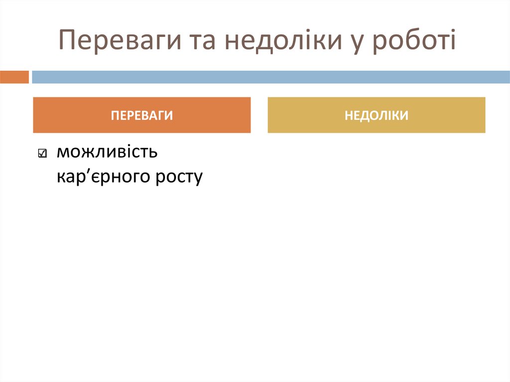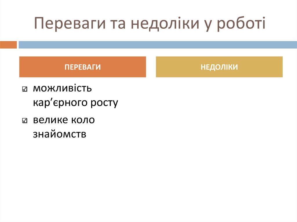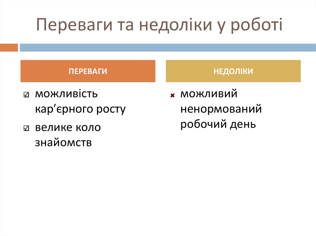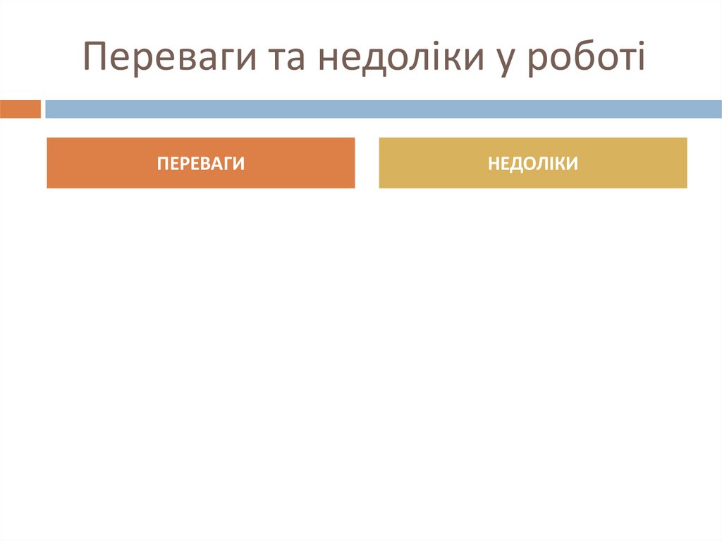 Переваги та недоліки у роботіПЕРЕВАГИ