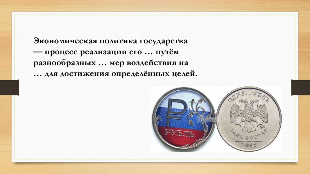 Экономическая политика государства— процесс реализации его … путём