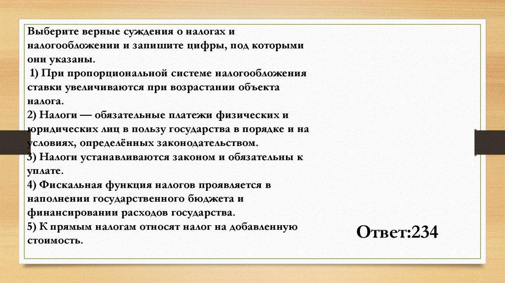 Выберите верные суждения о налогах иналогообложении и запишите цифры, под которыми