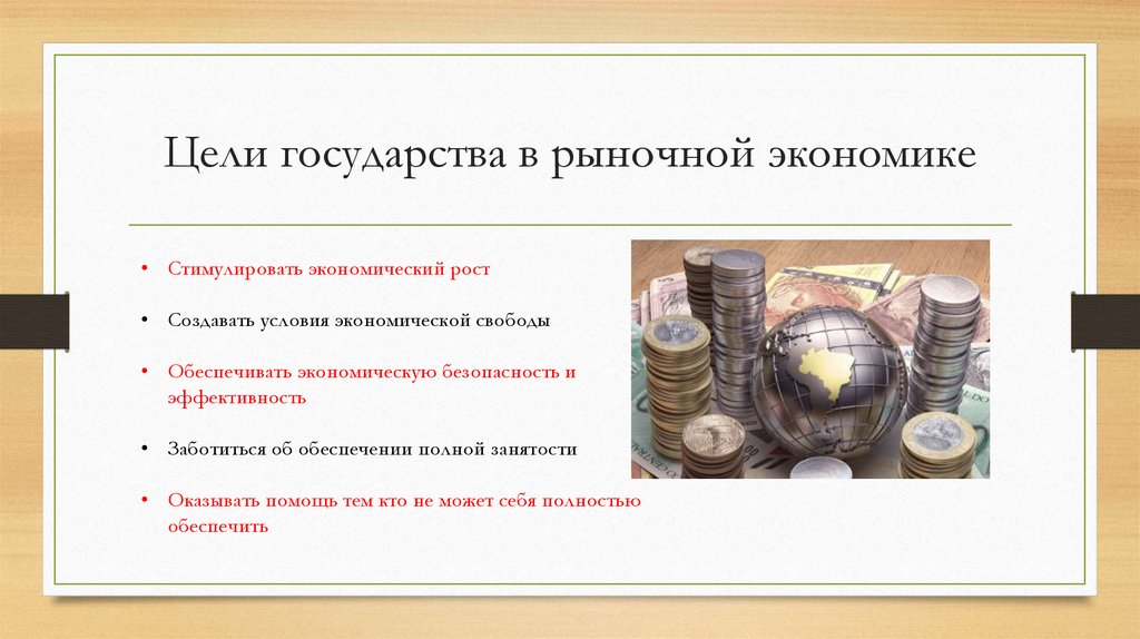 Цели государства в рыночной экономике• …….