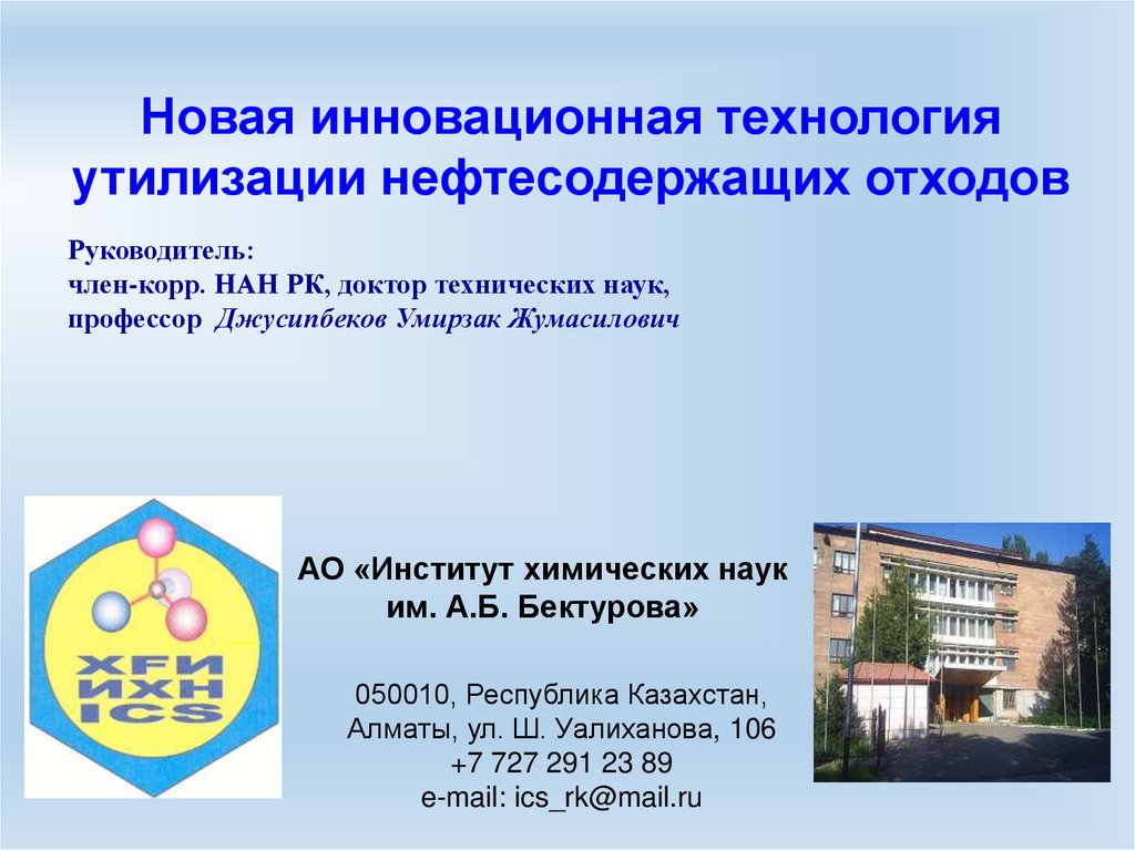 2В Институте химических наук им. А.Б.Бектурова на основании