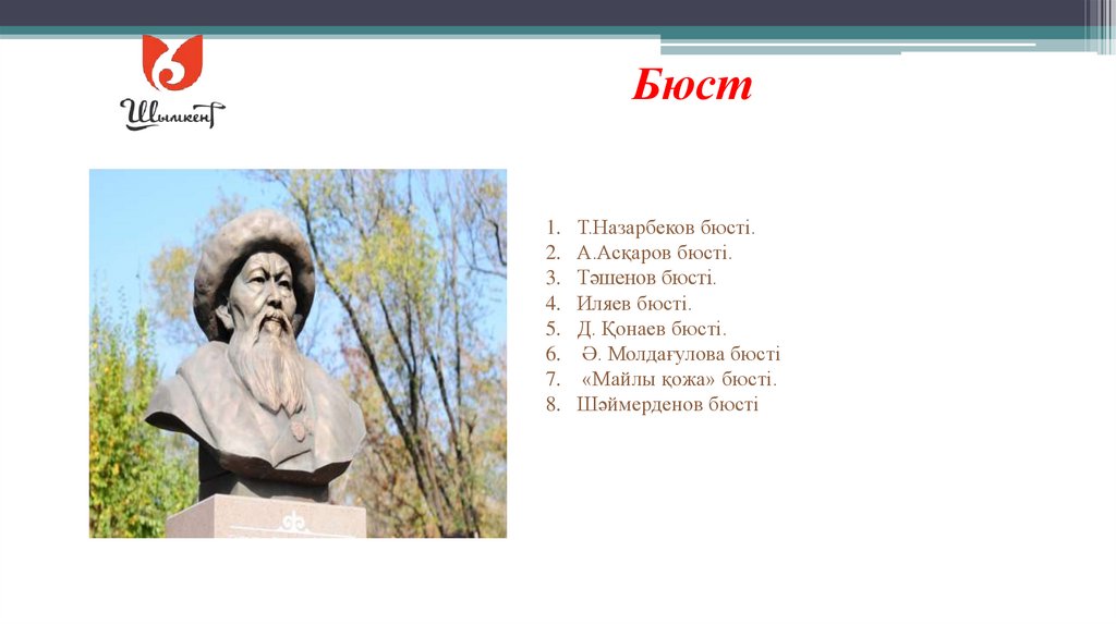 14. Ш.Қалдаяқов көшесі бойындағы «Ш. Қалдаяқов» ескерткіші.
