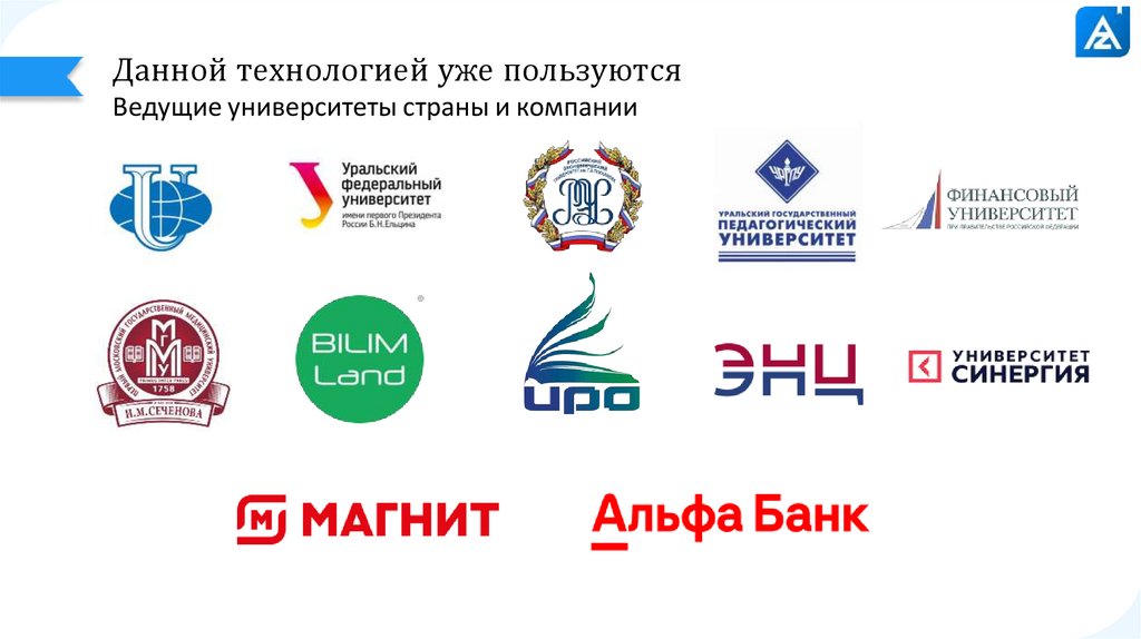 Данной технологией уже пользуютсяВедущие университеты страны и компании