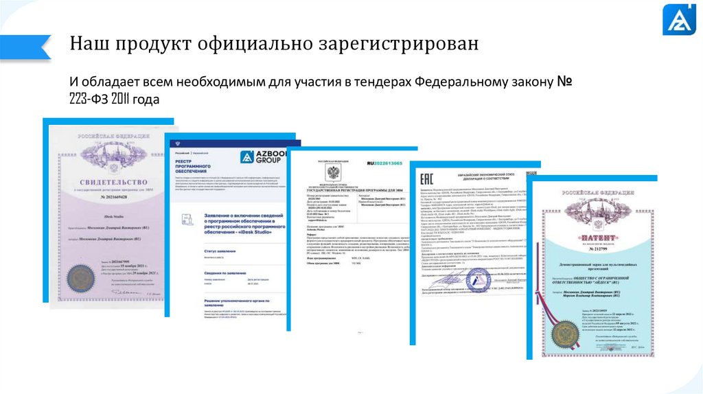 Наш продукт официально зарегистрированИ обладает всем необходимым для участия в тендерах Федеральному закону №