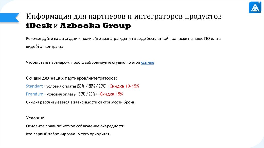 Информация для партнеров и интеграторов продуктовiDesk и Azbooka Group