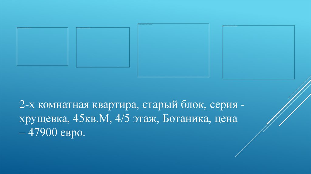 2-х комнатная квартира, старый блок, серия хрущевка, 45кв.М, 4/5 этаж, Ботаника, цена– 47900 евро.