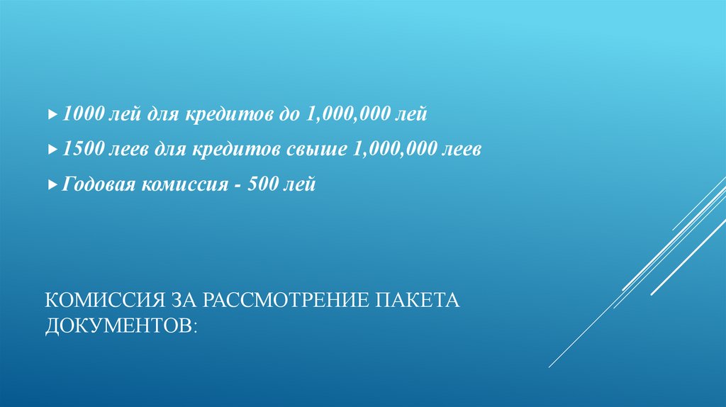 1000 лей для кредитов до 1,000,000 лей1500 леев для кредитов свыше 1,000,000 леев
