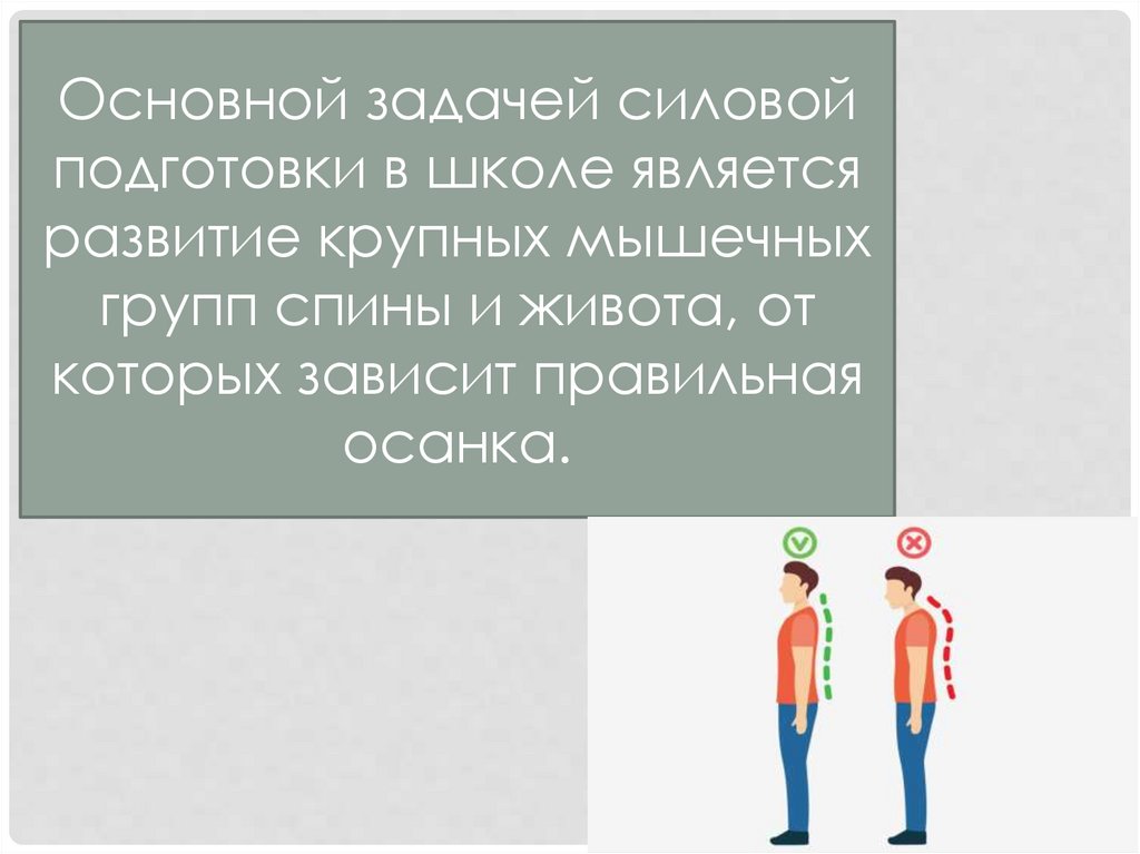 Основной задачей силовойподготовки в школе является