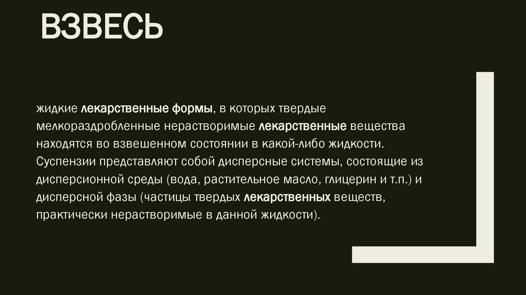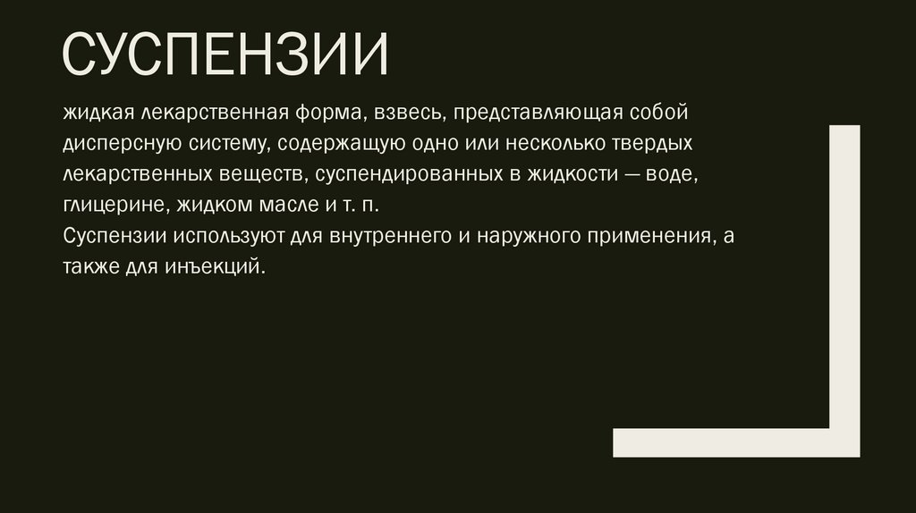 СУСПЕНЗИИжидкая лекарственная форма, взвесь, представляющая собой