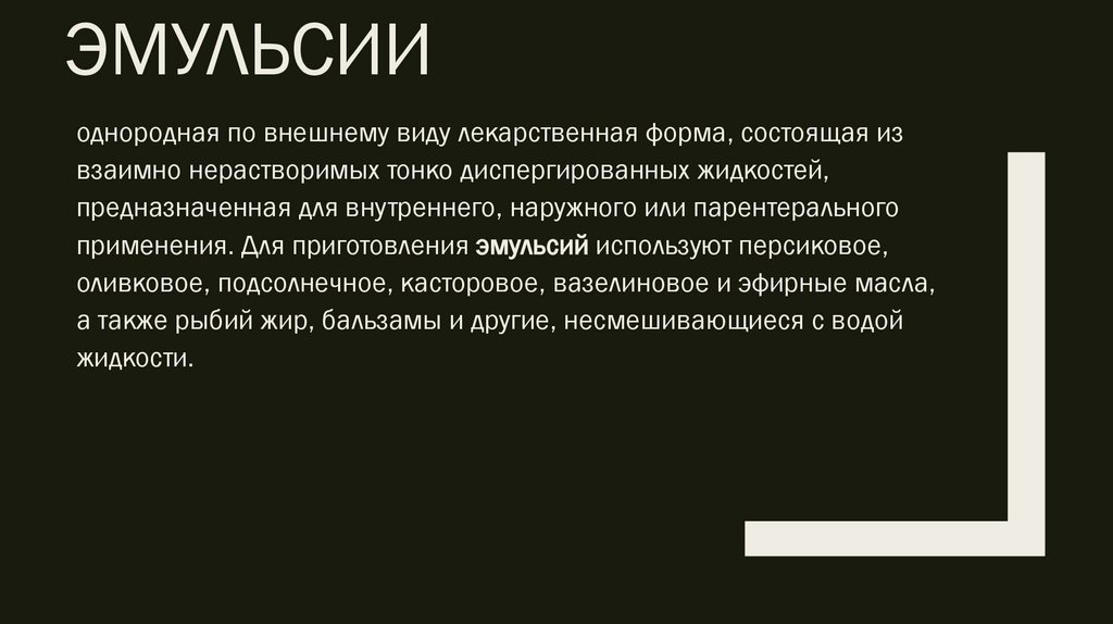 ЭМУЛЬСИИоднородная по внешнему виду лекарственная форма, состоящая из