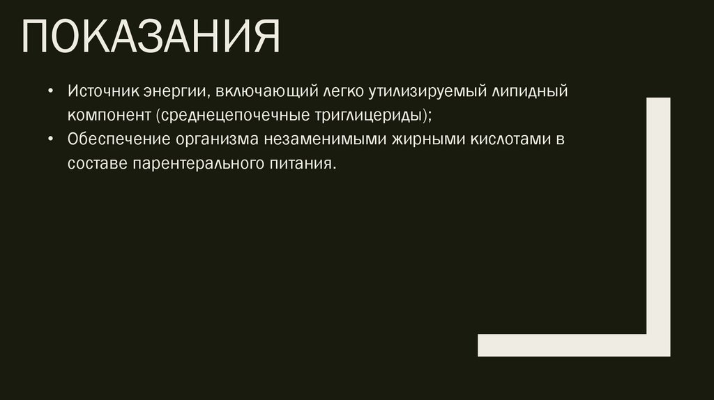 ПОКАЗАНИЯ• Источник энергии, включающий легко утилизируемый липидный