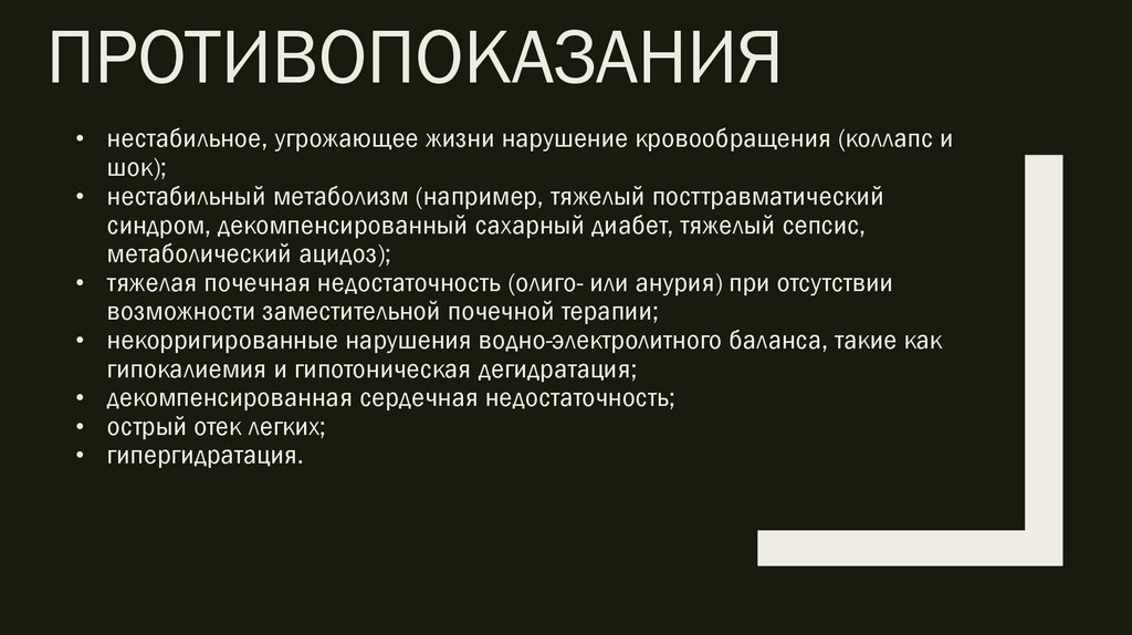 ПРОТИВОПОКАЗАНИЯ• нестабильное, угрожающее жизни нарушение кровообращения (коллапс и