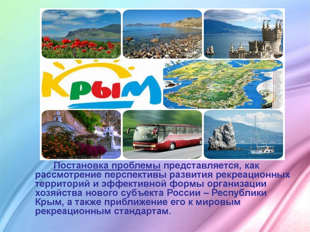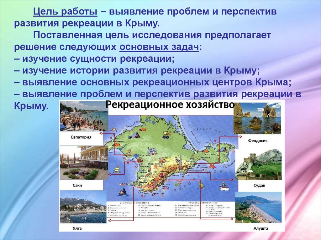 Цель работы − выявление проблем и перспективразвития рекреации в Крыму.
