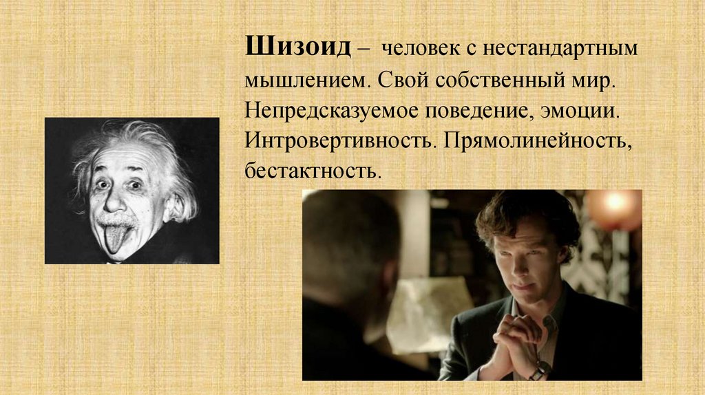 Шизоид – человек с нестандартныммышлением. Свой собственный мир.