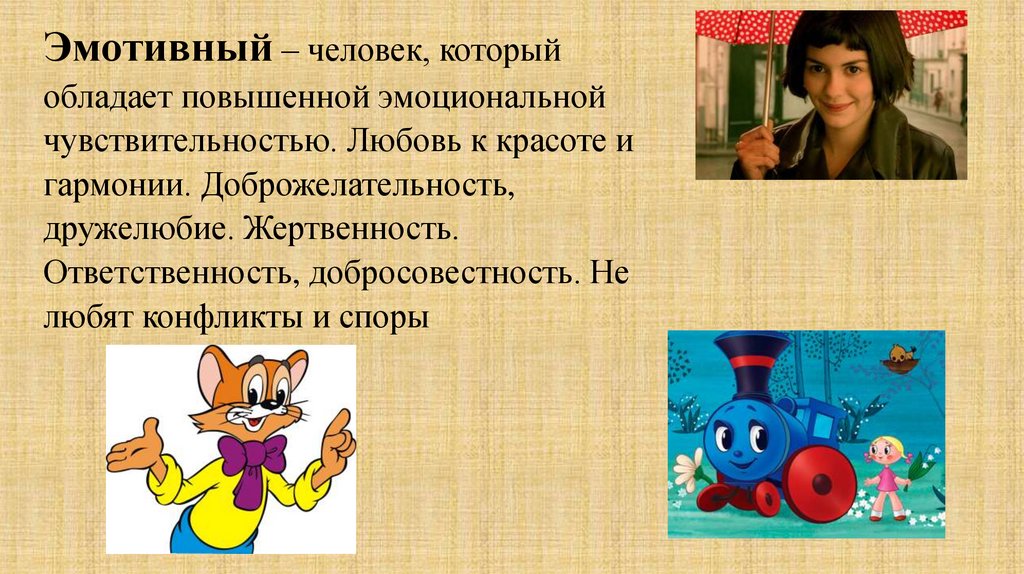 Эмотивный – человек, которыйобладает повышенной эмоциональной