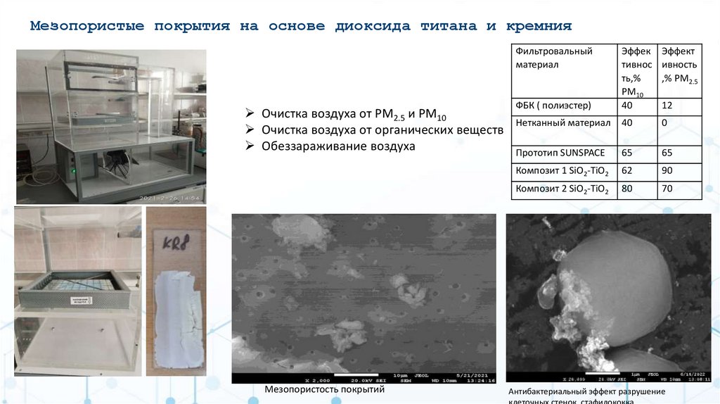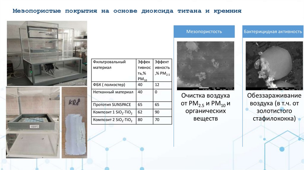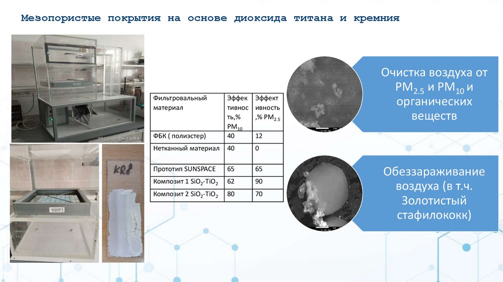 Мезопористые покрытия на основе диоксида титана и кремнияФильтровальный