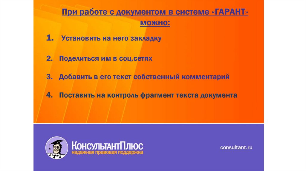 При работе с документом в системе «ГАРАНТ»можно:
