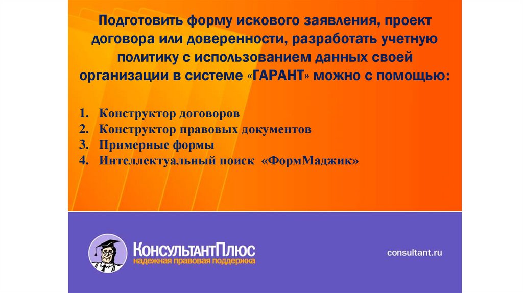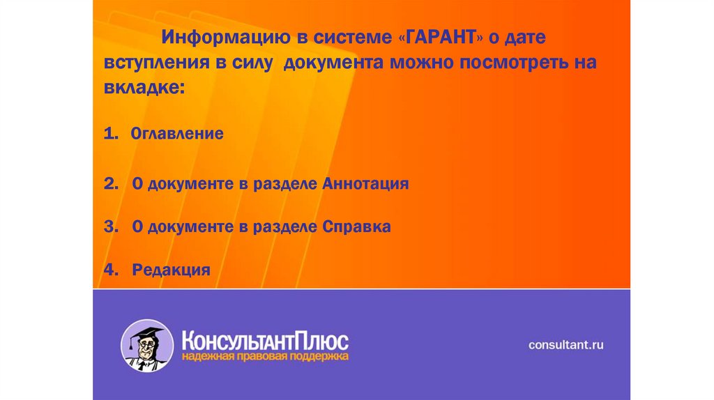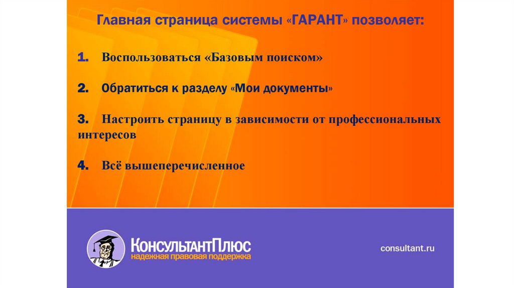 Главная страница системы «ГАРАНТ» позволяет:1.
