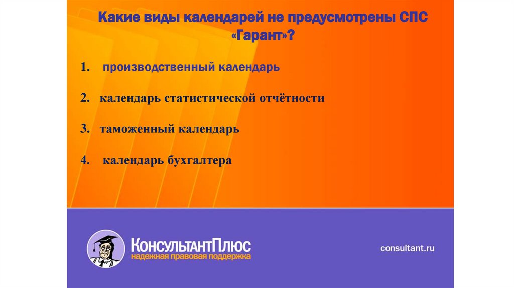 Какие виды календарей не предусмотрены СПС«Гарант»?