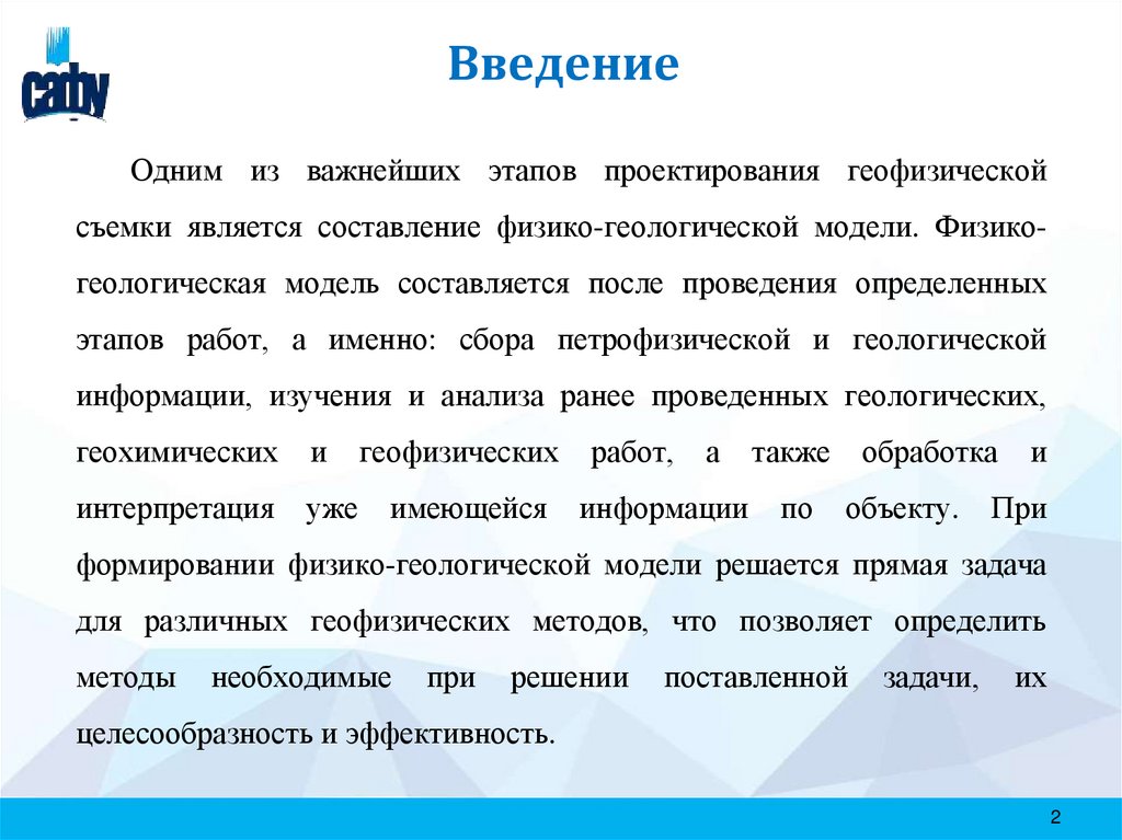 ВведениеОдним из важнейших этапов проектирования геофизической