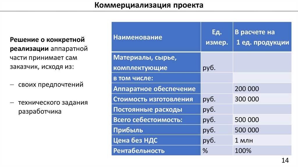 Коммерциализация проектаРешение о конкретной