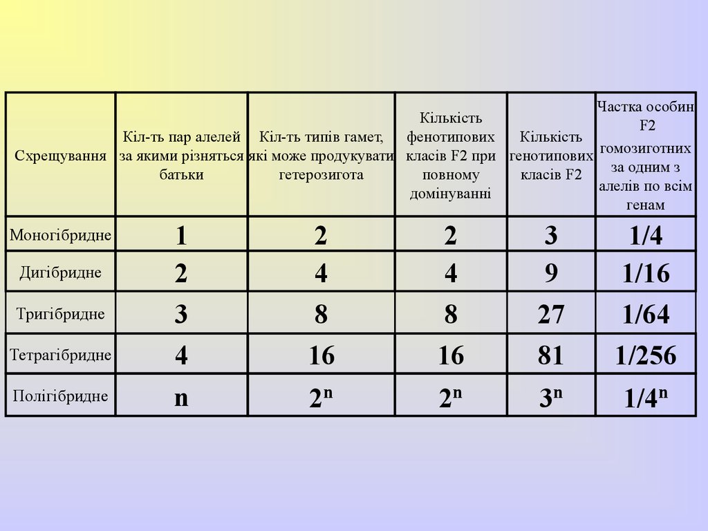 Кіл-ть пар алелей Кіл-ть типів гамет, фенотипових