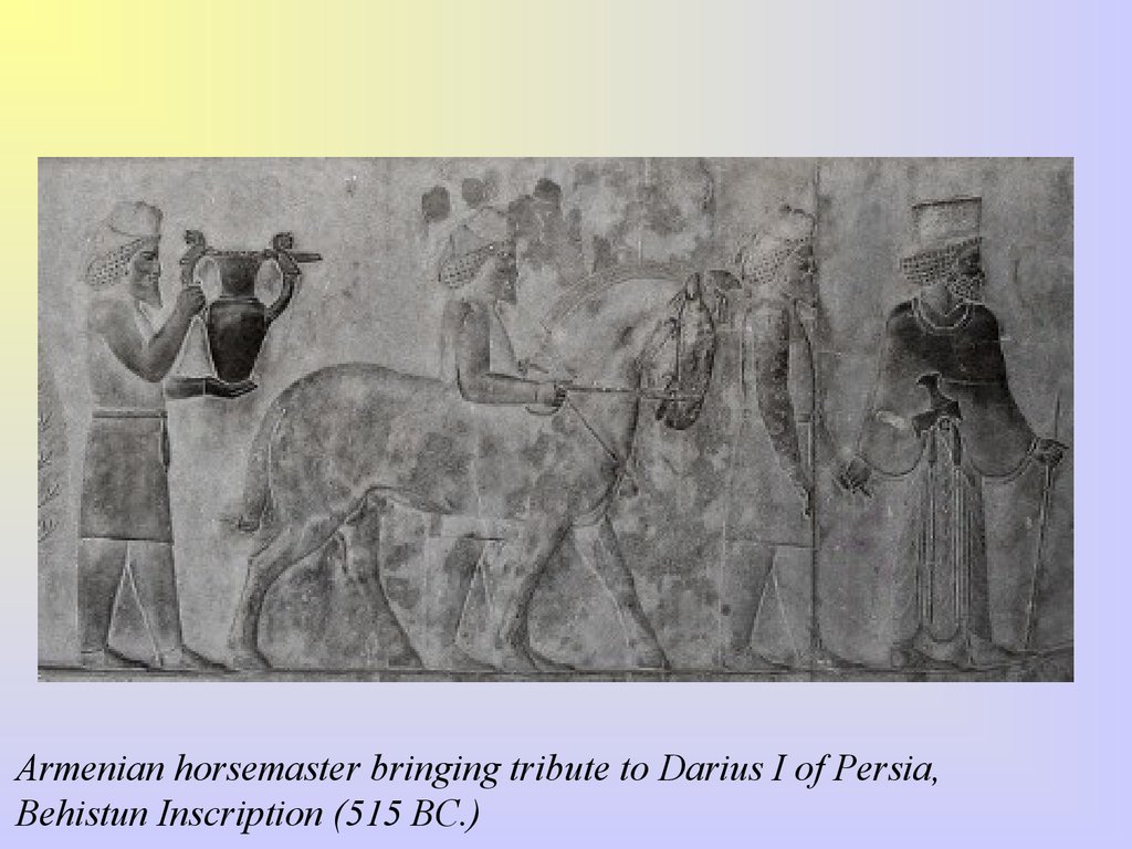 Armenian horsemaster bringing tribute to Darius I of Persia,Behistun Inscription (515 BC.)