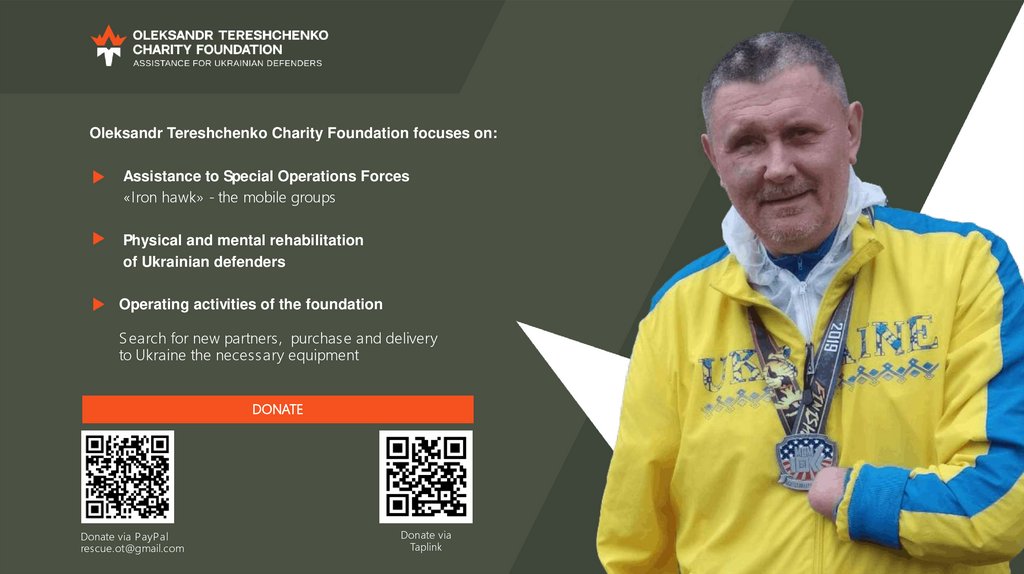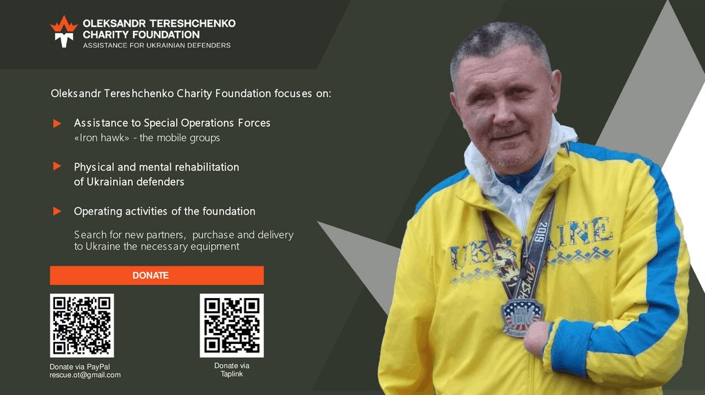 Oleks andr Teres hchenko Charity F oundation focus es on:As s is tance to Special Operations F orces