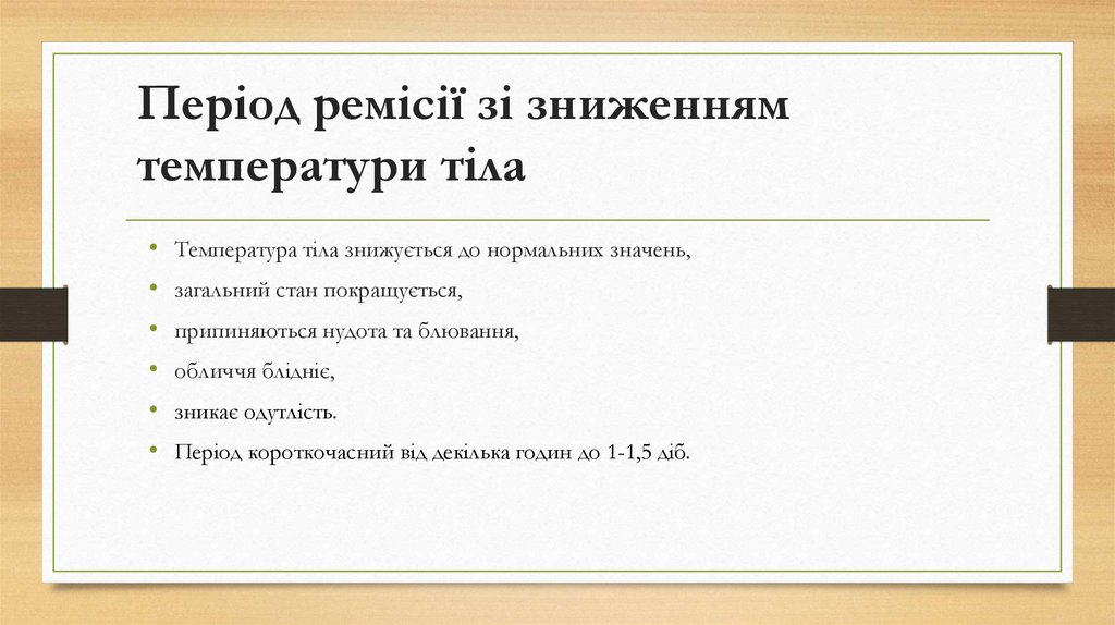 •період ремісії зі зниженням температури тіла,