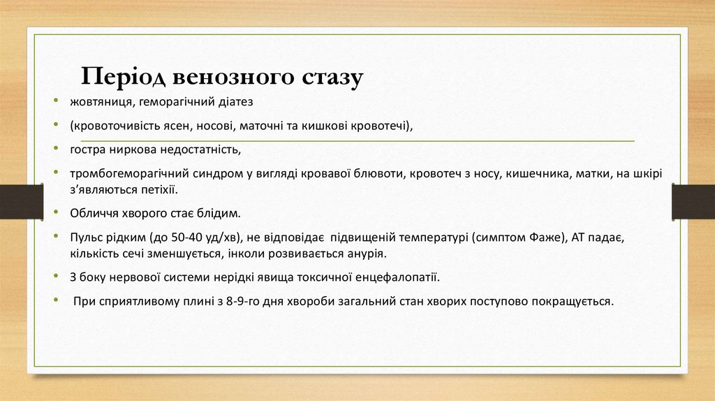 Період венозного стазу• жовтяниця, геморагічний діатез