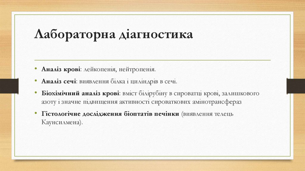 Лабораторна діагностика• Аналіз крові: лейкопенія, нейтропенія.