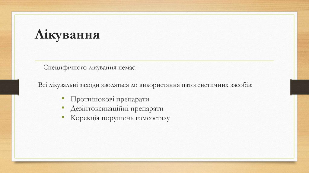 Всі лікувальні заходи зводяться до використання патогенетичних засобів: