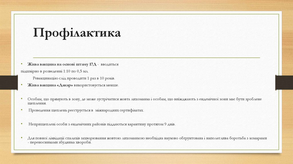 ПрофілактикаЖива вакцина на основі штаму 17Д - вводиться