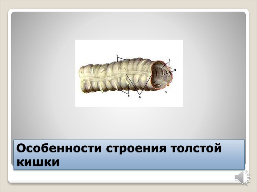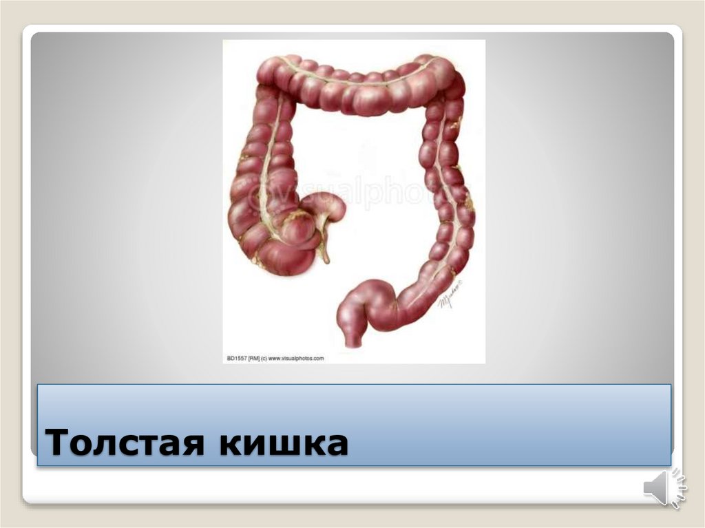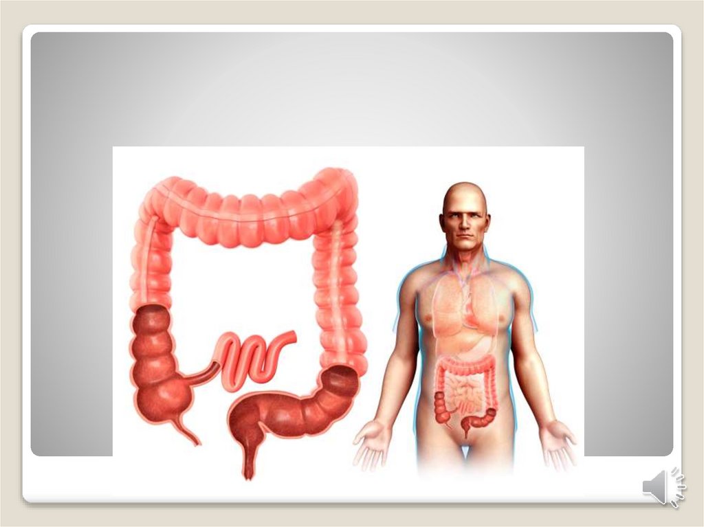 Части: слепая кишка с червеобразным отростком, ободочная кишка