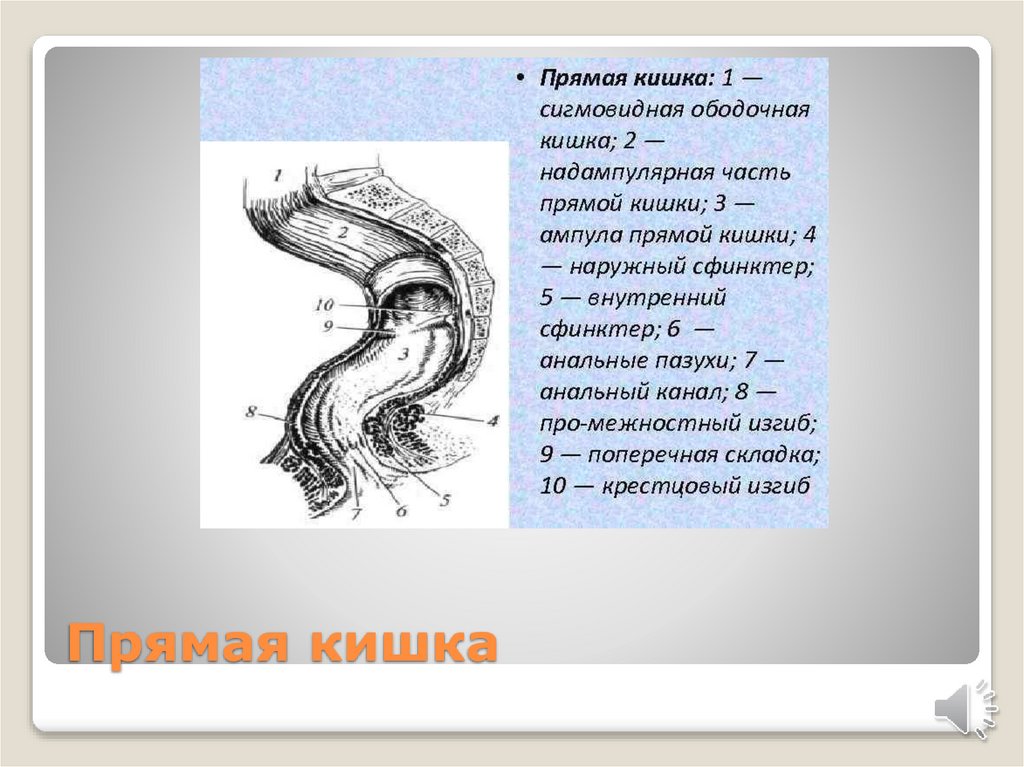 (восходящая, поперечная, нисходящая, сигмовидная) и прямая кишка.